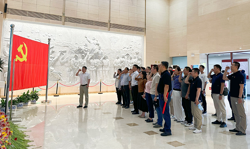 在紀(jì)念館內(nèi),公司黨委書記孫亞龍領(lǐng)誓,全體黨員在黨旗的見證下,重溫了對(duì)黨忠誠的錚錚誓言。