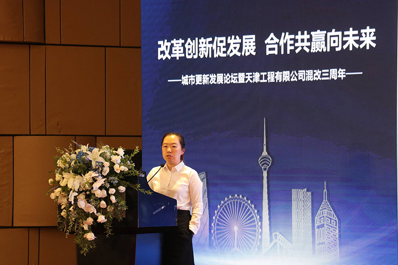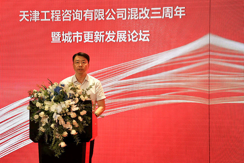 天津市國資委改革處副處長袁薔致辭。代表市國資委向天津咨詢混改三周年表示祝賀,也向關(guān)心和支持天津國資國企改革發(fā)展的各界朋友表示感謝。天津咨詢混改三年引進(jìn)了先進(jìn)的管理理念和經(jīng)營機(jī)制,實(shí)現(xiàn)了國有資產(chǎn)的保值增值,扎根天津、服務(wù)天津,加深了津滬兩地國資國企之間的合作與共贏。希望天津咨詢保持向好發(fā)展。不斷拓寬經(jīng)營思路,健全經(jīng)營機(jī)制,努力挖掘自身優(yōu)勢,提高企業(yè)核心競爭力,為混改后天津國資參股企業(yè)保持更好更快發(fā)展樹立典型。希望天津咨詢服務(wù)天津發(fā)展。主動融入和服務(wù)“十項(xiàng)行動”,持續(xù)推進(jìn)“三新”“三量”工作,抓住有利時機(jī),充分發(fā)揮在城市更新、資產(chǎn)盤活等方面的咨詢技術(shù)優(yōu)勢,為天津的城市建設(shè)和經(jīng)濟(jì)發(fā)展“添秤”。希望天津咨詢發(fā)揮紐帶作用。繼續(xù)穩(wěn)步推進(jìn)改革,將上海國企的先進(jìn)理念引入天津,進(jìn)一步發(fā)揮好上海國資和天津國資之間的紐帶作用,為推動雙方互利共贏做出積極貢獻(xiàn)。