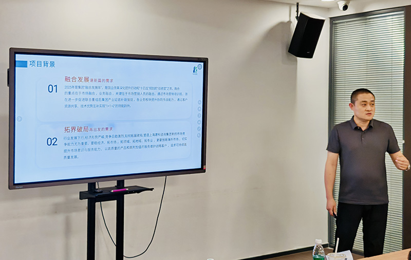 公司戰(zhàn)略市場(chǎng)部經(jīng)理于浩鵬結(jié)合參加集團(tuán)“融合發(fā)展、拓界破局”營(yíng)銷培訓(xùn)班心得體會(huì)進(jìn)行了交流分享。